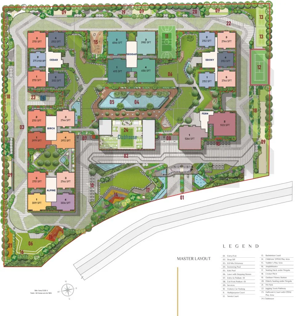 Sattva LakeRidge features contemporary architecture complemented by thoughtfully landscaped surroundings, creating an elegant and comfortable residential setting. The overall layout emphasizes openness, natural light, and functional design, ensuring that both style and practicality are well balanced. With a variety of shared amenities and carefully planned open spaces, Sattva LakeRidge promotes a lifestyle that supports relaxation, community interaction, and everyday ease within a well-organized and premium environment.