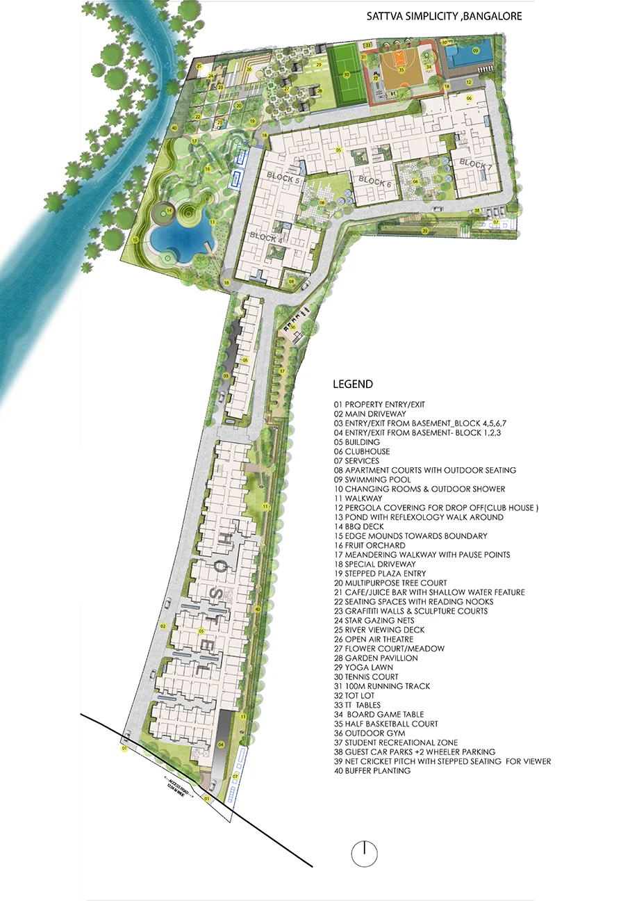 Located next to Sattva Global City, a well-known tech hub in Bengaluru, Sattva SimpliCity offers the advantage of being close to major workplaces while still maintaining a calm residential atmosphere. The surroundings include open spaces and greenery, helping create a more relaxed environment for everyday living.