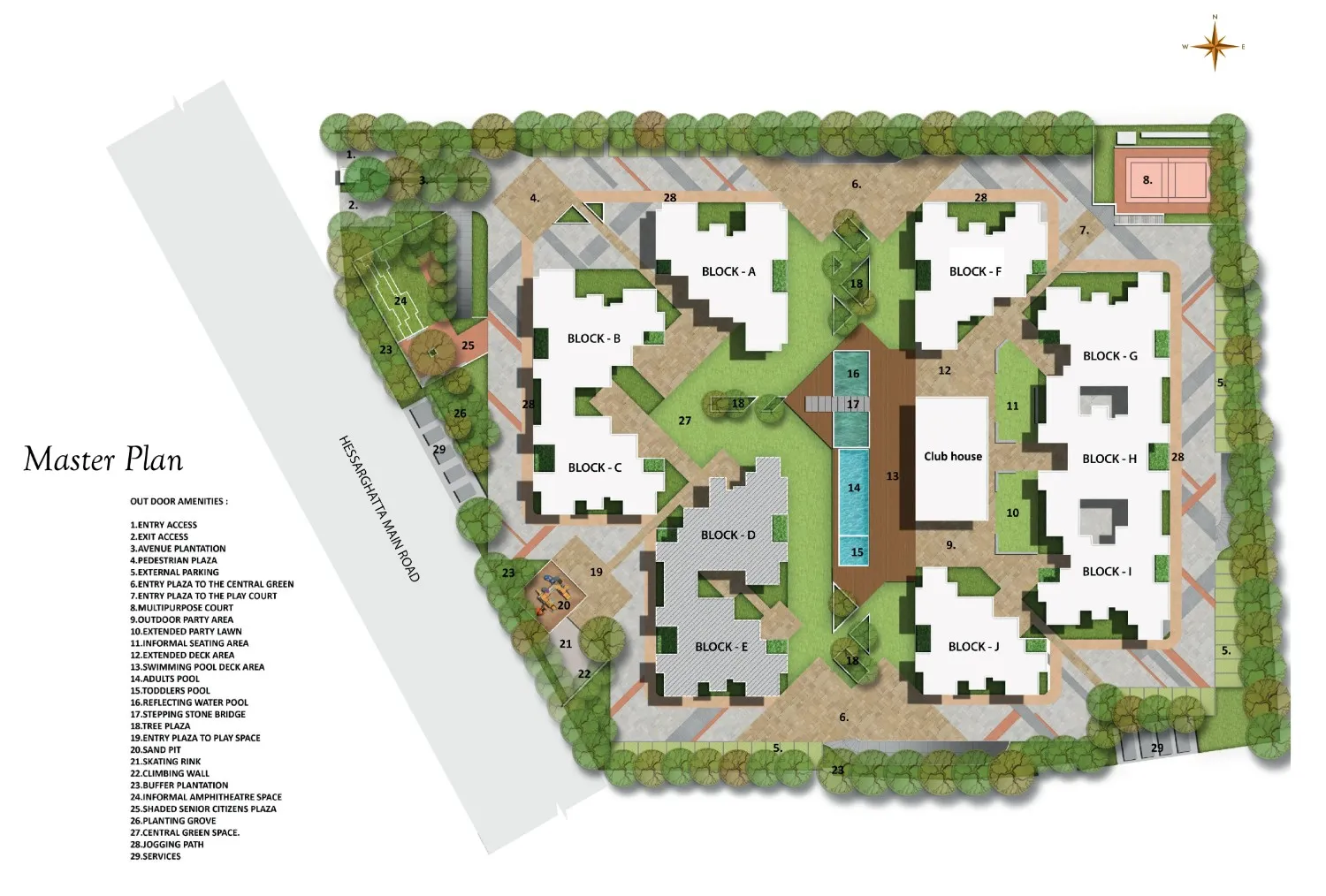 The project is situated about 5 km from Yeshwantpur Railway Station and roughly 2 km from Jalahalli Junction, making travel across the city easier. It is also close to several well-known international schools and offers good connectivity to Kempegowda International Airport, adding to the overall convenience of the location.